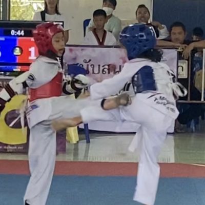 เด็กหญิงเพ็ญกวิน ออมขัน ได้รับรางวัล ชนะเลิศ เหรียญทอง การแข่งขัน กีฬาเทควันโด ประเภท ต่อสู้ ยุวชน หญิง 7-8 ) รุ่น D น้ำหนักเกิน 24-27 กก. ในการแข่งขัน “INTHANON TAEKWONDO CHAMPIONSHIP 2023 “