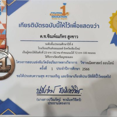 ได้รับใบประกาศและเหรียญรางวัล 24 ต.ค. 66
