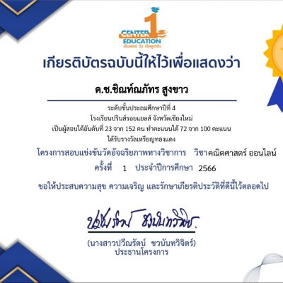 จากการแข่งขันโครงการสอบแข่งขันวัดอัจฉริยภาพทางวิชาการ วิชา ภาษาอังกฤษ / คณิตศาสตร์ ครั้งที่ 1