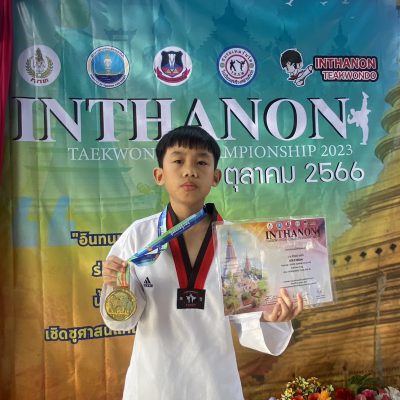 1. รางวัลชนะเลิศอันดับ 1 เหรียญทอง ประเภท KYORUGI รุ่นยุวชนชาย 9-10 ปี น้ำหนักไม่เกิน 23 กิโลกรัม