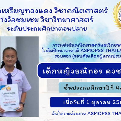 จากการแข่งขันคณิตศาสตร์และวิทยาศาสตร์โอลิมปิกนานาชาติ ASMOPSS THAILAND 2023