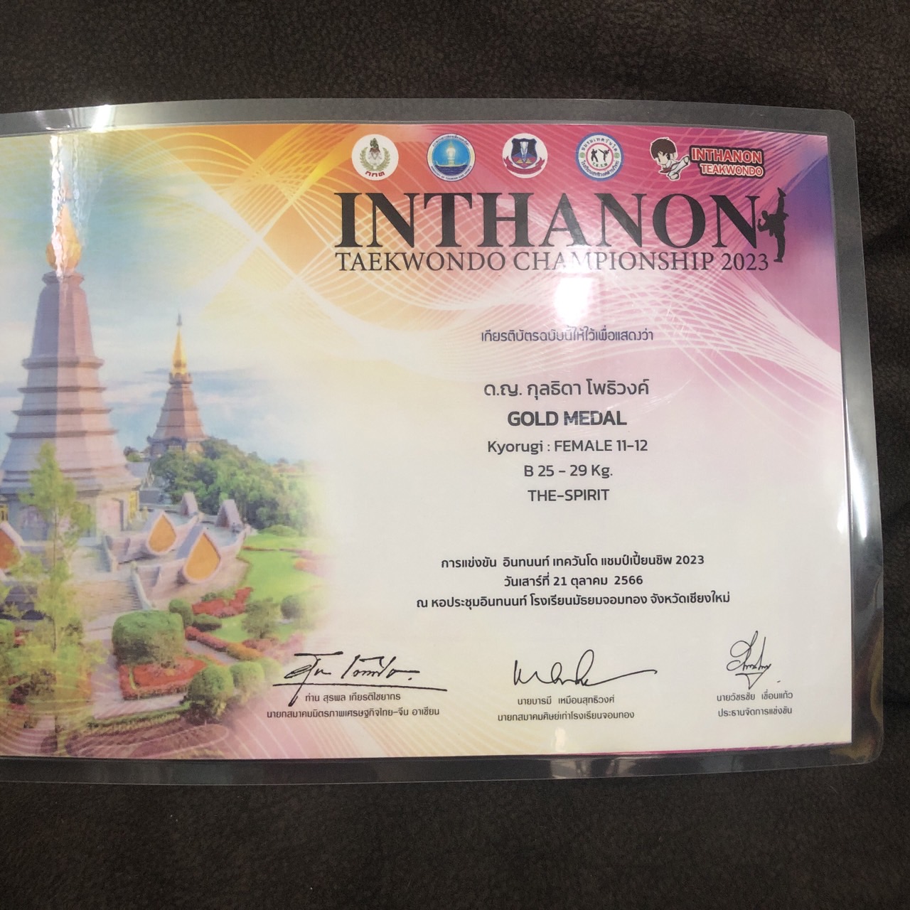 จากการแข่งขันอินทนนท์ เทควันโด แชมป์เปี้ยนชิพ 2023 จัดโดย โรงเรียนจอมทอง จังหวัดเชียงใหม เมื่อวันที่ 21 ตุลาคม 2566