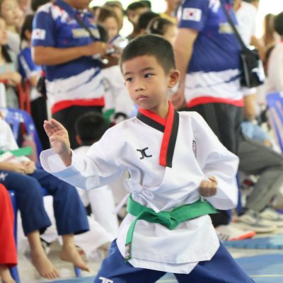 รางวัลชนะเลิศ เหรียญทอง แข่งรำพุ่มเซ่สายเขียว รุ่นอายุ 6 ปี