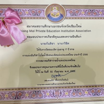 ขอชื่นชมและแสดงความยินดีกับ นายกันติชา นานาวิชิต  นักเรียนชั้น ม.5/10   นักกีฬาโปโลน้ำทีมชาติ  ที่ได้รับใบประกาศเกียรติคุณแสดงความยินดีนักเรียนที่สร้างผลงานดีเด่น    เมื่อวันที่ 30 กันยายน  2566  ณ โรงเรียนมงฟอร์ตวิทยาลัย  จัดโดย สมาคมสถานศึกษาเอกชนจังหวัดเชียงใหม่