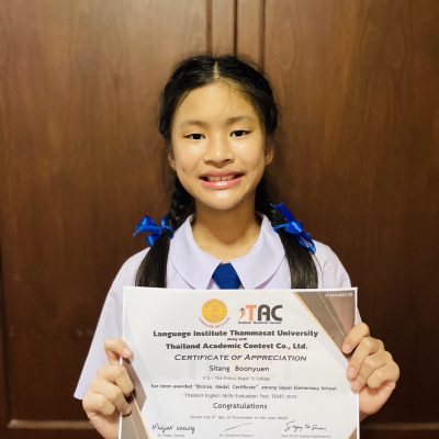 ที่ได้รับเกียรติบัตรเหรียญทองแดง จากโครงการประเมินทักษะภาษาอังกฤษระดับประเทศ ครั้งที่ 4 4th Thailand English Skills Evaluation Test (TESET) จัดโดย จัดโดย TAC (Thailand Academic Contest) บริษัท อคาเดมิค คอนเทสต์ (ประเทศไทย) จำกัด