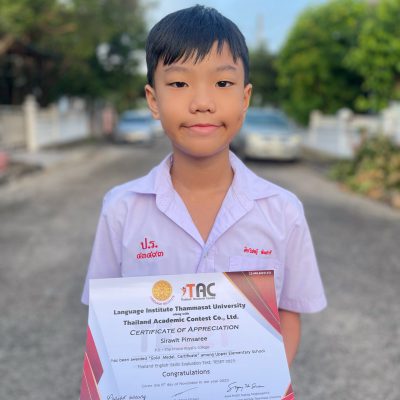 ที่ได้รับเกียรติบัตรเหรียญทอง จากโครงการประเมินทักษะภาษาอังกฤษระดับประเทศ ครั้งที่ 4 4th Thailand English Skills Evaluation Test (TESET) จัดโดย จัดโดย TAC (Thailand Academic Contest) บริษัท อคาเดมิค คอนเทสต์ (ประเทศไทย) จำกัด