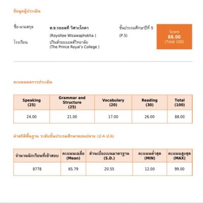 ที่ได้รับเกียรติบัตรเหรียญทอง วิชาภาษาอังกฤษ ระดับประเทศ จากโครงการการสอบประเมินทักษะภาษาอังกฤษระดับประเทศ ครั้งที่ 4 (4th TESET – Thailand English Skills Evaluation Test )
