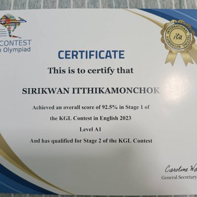 จัดโดย KGL Contest English Olympiad 2023 เมื่อวันที่ 21 พฤษภาคม2566