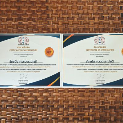 1. ประกาศนียบัตรเหรียญทองแดง วิชาวิทยาศาสตร์ระดับประถมศึกษาตอนต้น