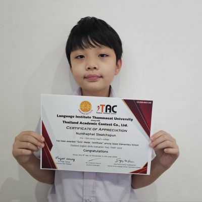 ที่ได้รับเกียรติบัตรเหรียญทอง วิชาภาษาอังกฤษ ระดับประเทศ จากโครงการการสอบประเมินทักษะภาษาอังกฤษระดับประเทศ ครั้งที่ 4 (4th TESET – Thailand English Skills Evaluation Test )