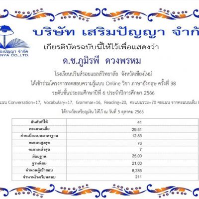 จากการแข่งขันโครงการทดสอบความรู้วิชาภาษาอังกฤษ ครั้งที่ 38