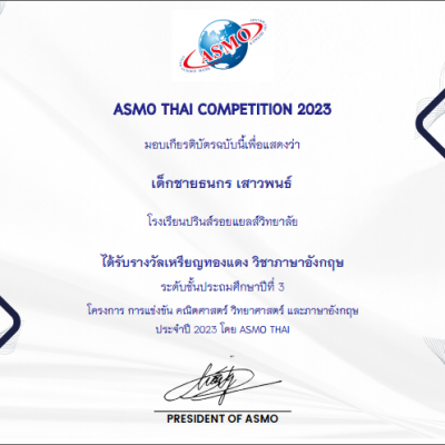ได้รับรางวัล เหรียญทองแดง วิชาภาษาอังกฤษ