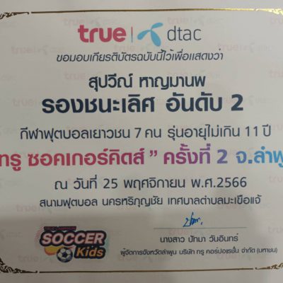 ที่ได้รับรางวัลรองชนะเลิศอันดับดับ 2 จากการแข่งขันฟุตบอล TRUE LAMPHUN SOCCER KIDS ครั้งที่ 2