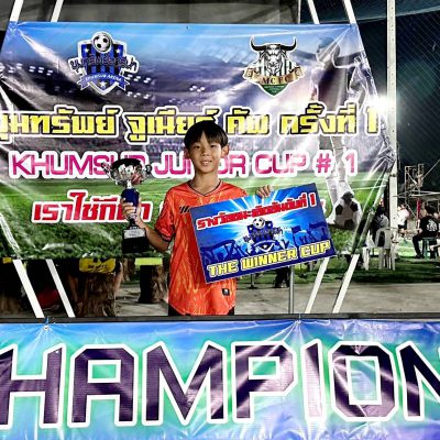เด็กชายพชร สุวรรณ์ นักเรียนชั้นประถมศึกษาปีที่ 3/7 ได้รับรางวัลชนะเลิศอันดับที่ 1 การแข่งขันฟุตบอล ขุมทรัพย์ จูเนียร์ คัพ ครั้งที่ 1 รุ่นอายุไม่เกิน 10 ปี