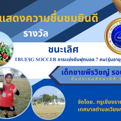 ขอชื่นชมและร่วมแสดงความยินดีกับ เด็กชายพีรวิชญ์ รอบเมือง ชั้นประถมศึกษาปีที่ 3/3 ที่ได้รับรางวัลชนะเลิศการแข่งขันฟุตบอล 7 คน รุ่นอายุไม่เกิน 10 ปี รายการ True5G Soccer