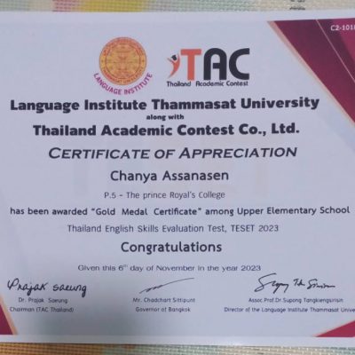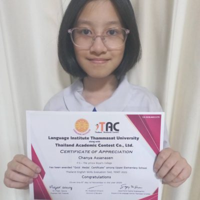 ที่ได้รับรางวัล เหรียญทอง จากการสอบแข่งขันภาษาอังกฤษระดับประเทศ ครั้งที่ 4 Language Institute Thammasat University Thailand Academic Contest จัดโดย จัดโดย TAC (Thailand Academic Contest)