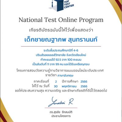 ที่ได้รับรางวัลเหรียญทอง จาก การแข่งขัน วัดความรู้ทางวิชาการ วิชาวิทยาศาสตร์ และ ภาษาอังกฤษ ระดับชั้น ป.4-6