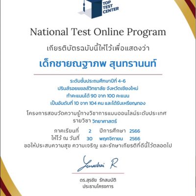 จัดโดยโครงการ Top Test Center (National test Online Program)