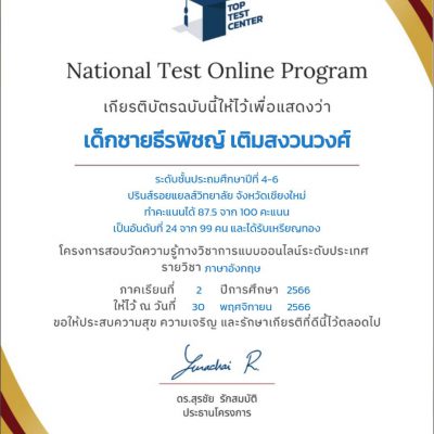 จาก National Test Online Program โครงการสอบวัดความรู้ทางวิชาการแบบออนไลน์ ระดับประเทศ