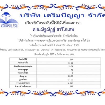 จาก โครงการทดสอบความรู้แบบ online วิชาภาษาอังกฤษ ครั้งที่ 38
