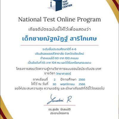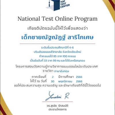 จากโครงการทดสอบและพัฒนาศักยภาพทางวิชาการ (National Test Online Program) ระดับประถมศึกษาตอนปลาย