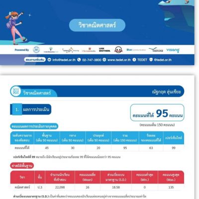 เด็กชายณัฐกฤต ลุ่นเซียะ ชั้นประถมศึกษา ปีที่ 3/7 ได้รับรางวัล ชมเชย (คณิตศาตร์) อันดับ 1 ของจังหวัด อันดับ 5 ของภูมิภาค อันดับ 114 ของประเทศ จากการสอบ TEDET