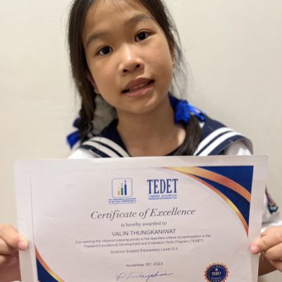 จากการสอบโครงการประเมินและพัฒนาสู่ความเป็นเลิศทางคณิตศาสตร์และวิทยาศาสตร์ Thailand Educational Development and Evaluation Tests (TEDET) ปี พ.ศ.2566 จัดโดย Thailand Educational Development and Evaluation Tests (TEDET)
