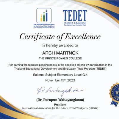 จากการสอบโครงการประเมินและพัฒนาสู่ความเป็นเลิศทางคณิตศาสตร์และวิทยาศาสตร์ Thainland Educational Development and Evluation Tests (TEDET) ประจำปี 2566