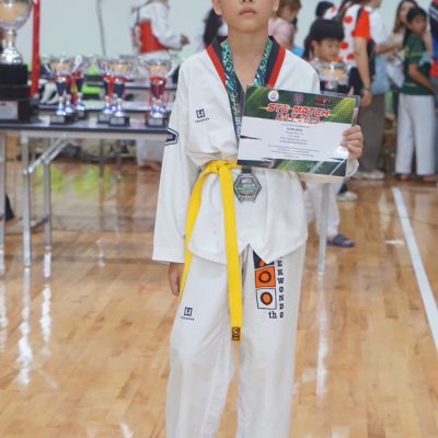 ที่ได้รับรางวัลเหรียญเงิน 1 เหรียญเทควันโด ประเภทต่อสู้ (Kyorugi) ชาย 11-12 ปีนำ้หนัก 35-38 กก.