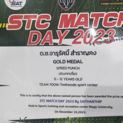 จากการแข่งขัน SCT MATCH DAY 2023 ประเภทชาย อายุ 11-12 ปี น้ำหนัก 35-38 กิโลกรัม