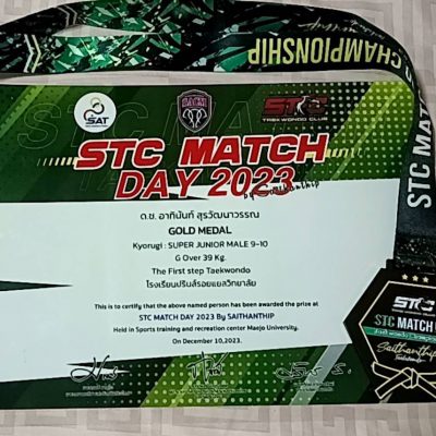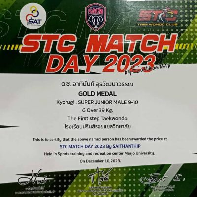ขอชื่นชมและร่วมแสดงความยินดีกับเด็กชายอาทินันท์ สุรวัฒนาวรรณ ชั้นประถมศึกษาปีที่ 3 ที่ได้รับรางวัล Gold medal Kyorugi : SUPER JUNIOR MALE 9 – 10 รุ่น G Over 39 Kg. ในการแข่งขันชิงแชมป์จังหวัดเชียงใหม่ ประจำปี 2566 STC MATCH DAY 2023 By Saithanthip จัดโดย สำนักงานการกีฬาแห่งประเทศไทยจังหวัดเชียงใหม่ ร่วมกับ สมาคมกีฬาแห่งจังหวัดเชียงใหม่ และสถาบันสายธารทิพย์เทควันโด้ ณ ศูนย์กีฬาเฉลิมพระเกียรติ มหาวิทยาลัยแม่โจ้ เมื่อวันที่ 10 ธันวาคม 2566
