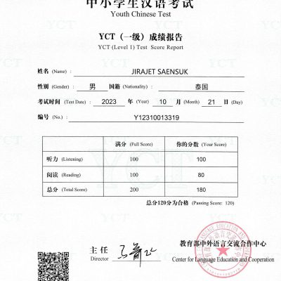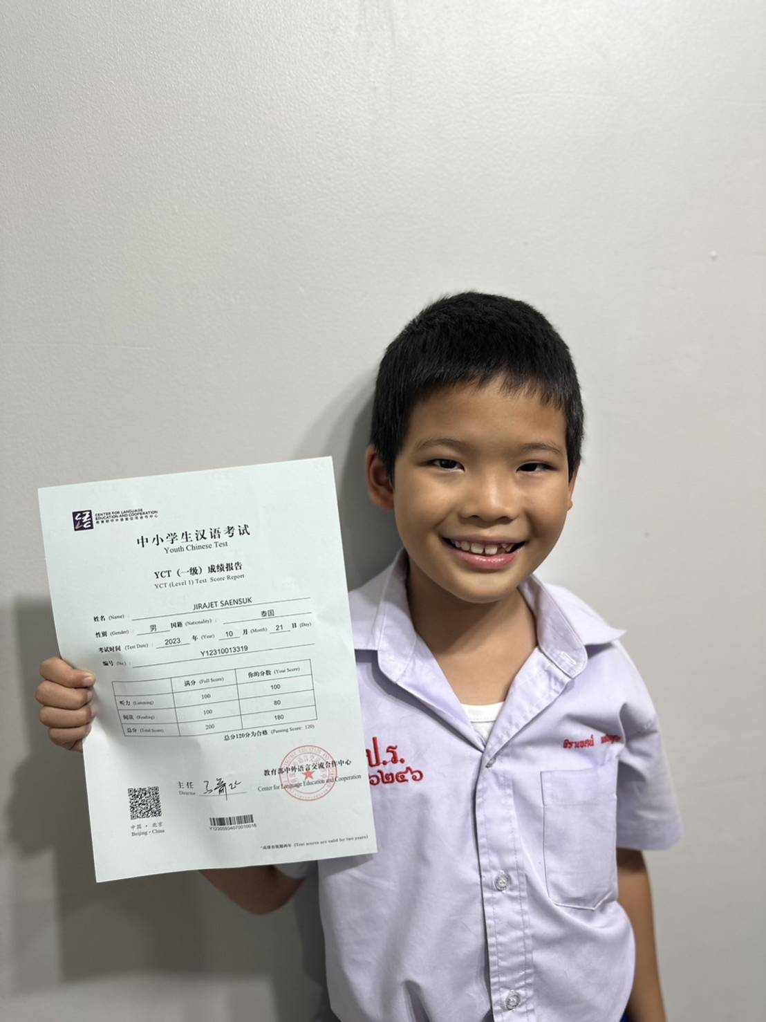 ขอชื่นชมและร่วมแสดงความยินดีกับ เด็กชายจิราเจตน์ แสนสุข ชั้นประถมศึกษาปีที่ 2/4 ที่ได้ผ่านการทดสอบการสอบวัดความสามารถในการใช้ภาษาจีนกลาง YCT( Youth Chinese Test) จัดโดยสถาบันขงจื่อ มหาวิทยาลัยเชียงใหม่ เมื่อวันที่ 21 ตุลาคม 2566