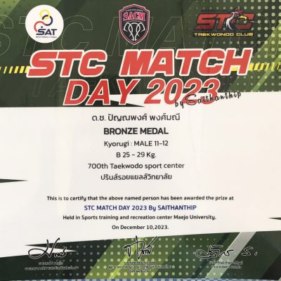 จาก STC MATCH DAY 2023 เทควันโด ประเภทต่อสู้ (Kyorugi) ชาย 11-12 ปี