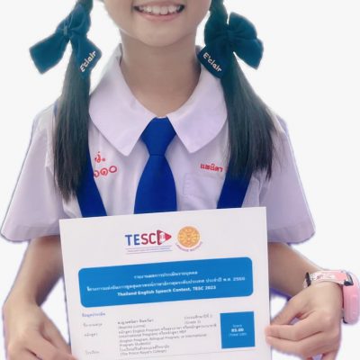 ขอชื่นชมและร่วมแสดงความยินดีกับเด็กหญิงนพนิตา จันทร์มา ชั้นประถมศึกษาปีที่ 3 ได้รับรางวัลเกียรติบัตรเหรียญทอง ในโครงการแข่งขันการพูดสุนทรพจน์ภาษาอังกฤษระดับประเทศ ประจำปี พ.ศ. 2566 (Thailand English Speech Contest, TESC) ในหัวข้อ “Let’s promote our school” มาประชาสัมพันธ์โรงเรียนของเรากันเถอะ แข่งขันรูปแบบออนไลน์โดยการส่งคลิปวิดีโอ จัดการแข่งขันโดย บริษัท อคาเดมิค คอนเทสต์ (ประเทศไทย) จำกัด ร่วมกับ สถาบันภาษามหาวิทยาลัยธรรมศาสตร์ LITU” (MOU ด้านวิชาการ) เมื่อวันที่ 16 ตุลาคม 2566