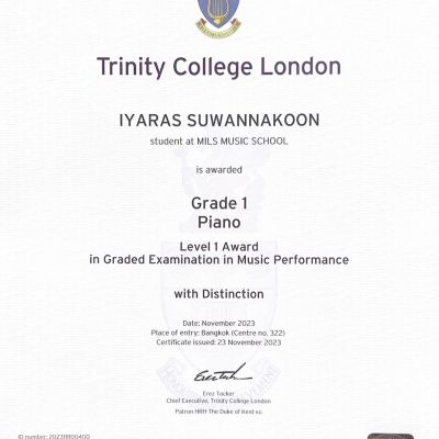ที่ได้รับรางวัล เกียรตินิยมอันดับ 1 grade 1 Piano