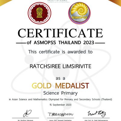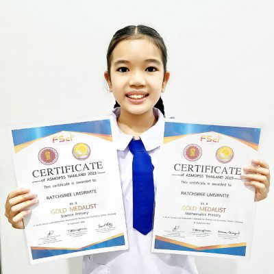 ที่ได้รับรางวัลเหรียญทองวิชาคณิตศาสตร์และวิทยาศาสตร์ ระดับประถมศึกษาปีที่ 5 จาก ASMOPSS THAILAND 2023
