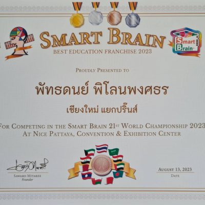 ที่ได้รับ รางวัลเหรียญเงิน (รุ่น Level ๔ อายุ ๑๐ ปี) จาก “21st Smart Brain World Championship Internatinal Competition 2023”