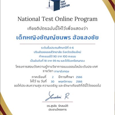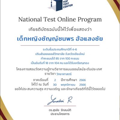 ที่ได้รับ เกียรติบัตรเหรียญทอง วิชาภาษาอังกฤษและวิชาวิทยาศาสตร์