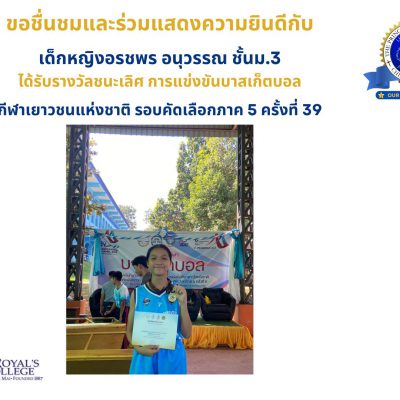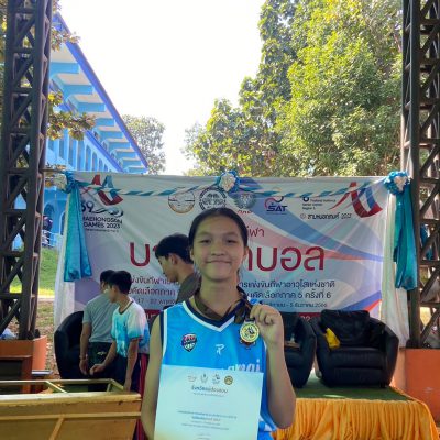 ขอชื่นชมและแสดงความยินดีกับ เด็กหญิงอรชพร อนุวรรณ นักเรียนชั้นมัธยมศึกษาปีที่ 3 ได้รับรางวัลชนะเลิศกีฬาบาสเก็ตบอล(บาสเกตบอลหญิง ประเภททีม5×5) กีฬาเยาวชนแห่งชาติ รอบคัดเลือกภาค 5 ครั้งที่ 39 “แม่ฮ่องสอนเกมส์” ระหว่างวันที่ 17 – 29 พฤศจิกายน 2566 ณ จังหวัดแม่ฮ่องสอน