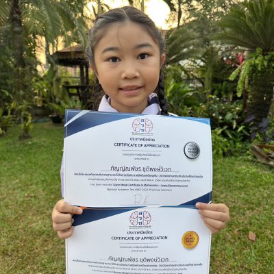 ขอชื่นชมและร่วมแสดงความยินดีกับเด็กหญิงกัญญ์ณพัชร ชุติพงษ์วิเวท ชั้นประถมศึกษาปีที่ 3 ที่ได้รับรางวัลอันดับ 1 ของจังหวัดเชียงใหม่ อันดับ 4 ของภาคเหนือวิชาคณิตศาสตร์ระดับประถมศึกษาตอนต้น ประกาศนียบัตรเหรียญเงินวิชาคณิตศาสตร์ระดับประถมศึกษาตอนต้น และประกาศนียบัตรเหรียญทองแดง วิชาวิทยาศาสตร์ระดับประถมศึกษาตอนต้น ในการแข่งขันสอบวัดทักษะวิชาการระดับชาติ (สวช.) ประจำปี พ.ศ.2566 (รอบคัดเลือกตัวแทนจังหวัด)จัดโดย สำนักงานโครงการสอบวัดทักษะวิชาการระดับชาติ (สวช.) ณ โรงเรียนปรินส์รอยแยลส์วิทยาลัยเชียงใหม่ เมื่อวันที่ 11 พฤศจิกายน 2566