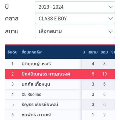 ระดับภูมิภาค Class E Boy จัดโดย Thai Junior Golf Assosiation และได้รับคัดเลือกเป็นตัวแทนภาคเหนือ เข้าแข่งขันกอล์ฟเยาวชนชิงแช้มป์ระดับประเทศ รอบFinal Master Championship 2023 วันที่ 22-24 ธันวาคม 2566 ณ สนามกอล์ฟเขื่อนอุบลรัตน์ จังหวัดขอนแก่น