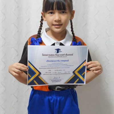 เด็กหญิงเอวาริน เทพสุคนธ์ ชั้นประถมศึกษาปีที่ 3/2 ได้รับรางวัลเหรียญทอง วิชาคณิตศาสตร์ โครงการทดสอบและพัฒนาศักยภาพทางวิชาการ (National Test Online Program)