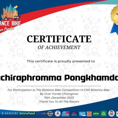 ได้รับรางวัล ชนะเลิศอันดับที่ 3 PEDAL BIKE ปั่น รุ่นอายุ 5.1 ปี-8.0 ปี