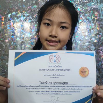 ขอชื่นชมและร่วมแสดงความยินดีกับ เด็กหญิงรินทร์รตา อุทยานสุทธิ ชั้นประถมศึกษาปีที่ 2/4 ที่ได้รับประกาศนียบัตรเหรียญทองแดง-วิชาภาษาอังกฤษระดับประถมศึกษาตอนต้น การแข่งขันสอบวัดทักษะวิชาการระดับชาติ (สวช.) ประจำปีพุทธศักราช 2566 จัดโดยสำนักงานโครงการสอบวัดทักษะวิชาการระดับชาติ (สวช.) ณ โรงเรียนปรินส์รอยแยลส์วิทยาลัย เมื่อวันที่ 11 พฤศจิกายน 2566