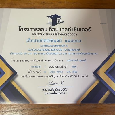 จากโครงการทดสอบและพัฒนาศักยภาพทางวิชาการ (National Test Online Program) ระดับประถมศึกษาตอนปลาย