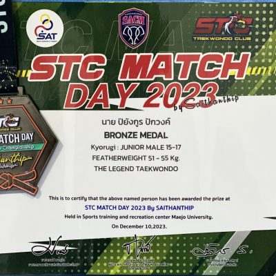 ขอชื่นชม และแสดงความยินดีกับ นายปิยังกูร ปิกวงค์ ม.4/1 สังกัดยิม The Legend Taekwondo รับรางวัล Bronze Medal Kyorugi : JUNIOR MALE 15 – 17 FEATHERWEIGHT 51-55 Kg. จากการแข่งขัน STC MATCH DAY 2023 by Saithanthip วันที่ 10 ธันวาคม 2566 ณ ศูนย์กีฬาและนันทนาการ มหาวิทยาลัยแม่โจ้ จังหวัดเชียงใหม่ (ระดับภาค)