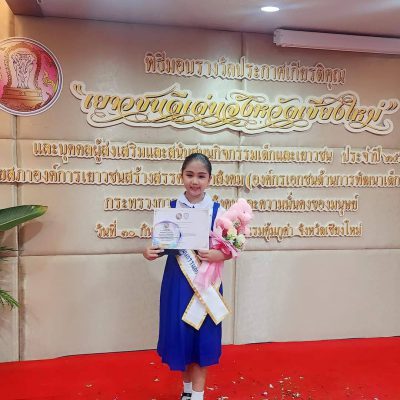 ขอชื่นชมและร่วมแสดงความยินดีกับเด็กหญิงธัญลักษณ์ ชัยวรรณารัตน์ ชั้นประถมศึกษาปีที่ 3 ที่ได้รับรางวัลประกาศเกียรติคุณเยาวชนดีเด่นและบุคคลผู้ส่งเสริมและสนับสนุนกิจกรรมเด็กและเยาวชนจังหวัดเชียงใหม่ จากนายวีรพงศ์ ฤทธิ์รอด รองผู้ว่าราชการจังหวัดเชียงใหม่ จัดโดย สภาองค์กรเยาวชนสร้างสรรค์พัฒนาสังคม เนื่องในวันเยาวชนแห่งชาติประจำปี 2566 เมื่อวันที่ 30 กันยายน 2566