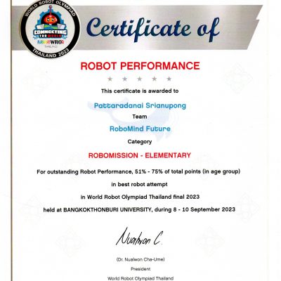 จากรายการการแข่งขันหุ่นยนต์ ROBOT PERFORMANCE World Robot Olympiad Thailand final 2023