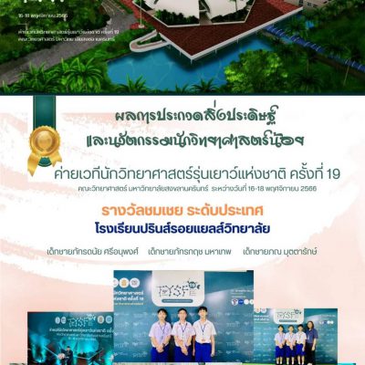 จากรายการ การประกวดสิ่งประดิษฐ์และนวัตกรรมนักวิทยาศาสตร์น้อย ค่ายเวทีนักวิทยาศาสตร์รุ่นเยาว์แห่งชาติ ครั้งที่ 19