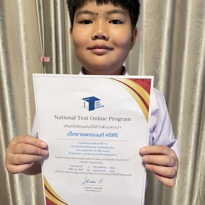 ได้รับรางวัลเหรียญทอง วิชา วิทยาศาสตร์  จากการสอบแข่งขันโครงการ Top Test Center